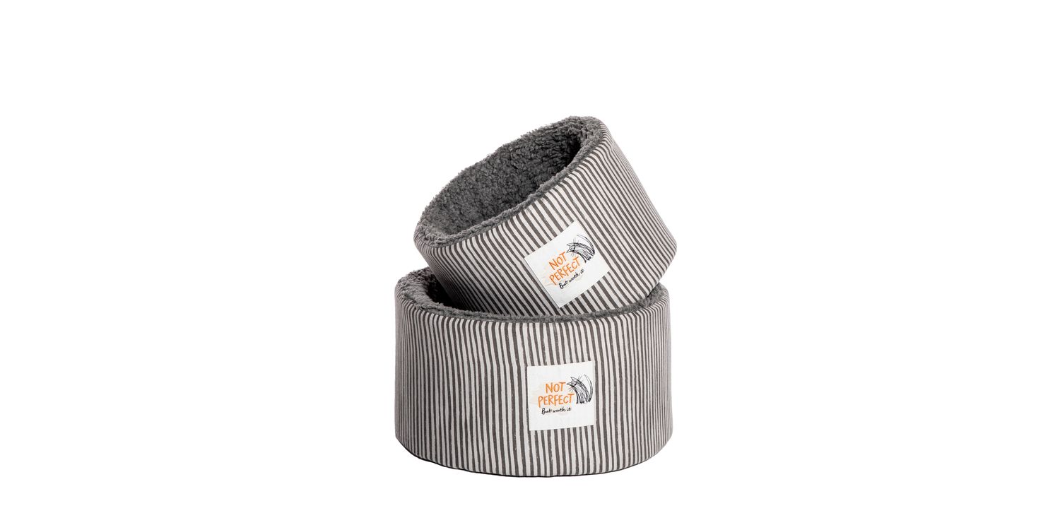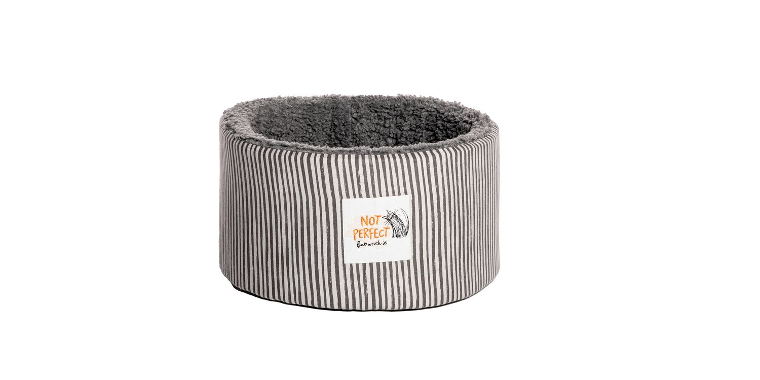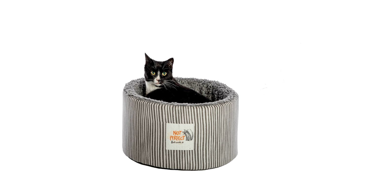 This Battersea Snuggly Stripes Cat Cosy Bed will be a warm and comfortable sanctuary for your pet, with a soft brushed cotton exterior and a Sherpa fleece lining that has been made from 100% recycled fibres.