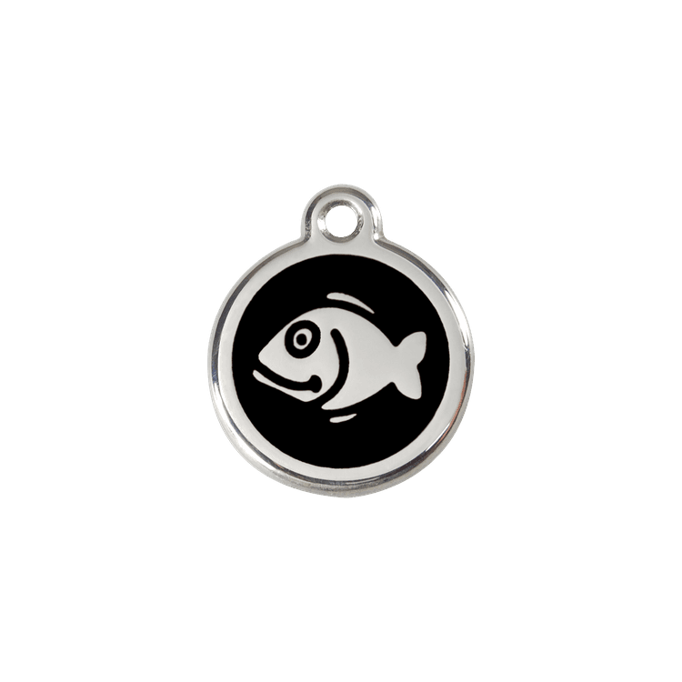 High quality personalised Cat tag by Red Dingo. Made from Stainless Steel in a stylish Black Fish design, this collar tag looks fantastic as well as ensuring a quick reunion should your beloved pet become lost.