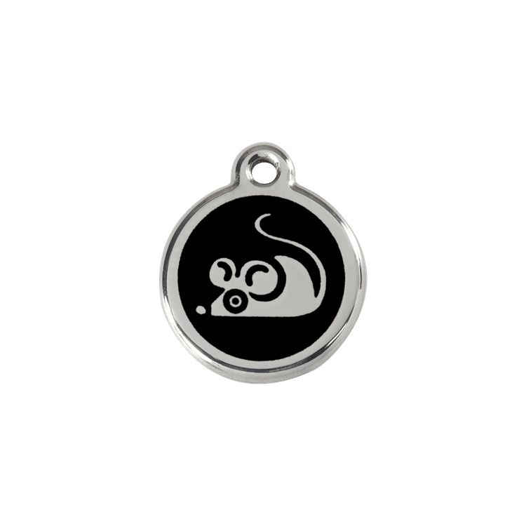 High quality personalised Cat tag by Red Dingo. Made from Stainless Steel in a stylish Black Mouse design, this collar tag looks fantastic as well as ensuring a quick reunion should your beloved pet become lost.