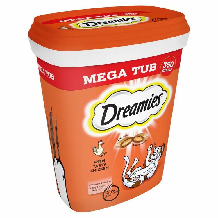 This Dreamies Cat Treats With Chicken Megatub is bursting with flavour, offering crunchy snacks that are soft on the inside.