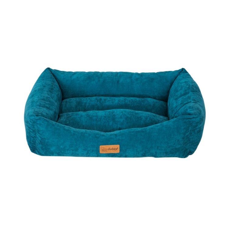 Elevate your dog’s downtime with this luxuriously soft teal velvet dog bed.