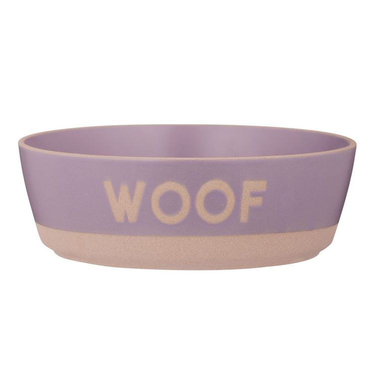 Designed with a sophisticated wax resist finish, the Woof 20cm Dog bowl features a matt upper section and a natural look base and text for added design and charm. The thoughtful angled shape makes dining more comfortable for your furry friends, combining style and functionality in every meal. Made from durable stoneware, the pet bowl is dishwasher safe. Measuring 20cm diameter x 6.7cm height. Capacity 1.3 litre.