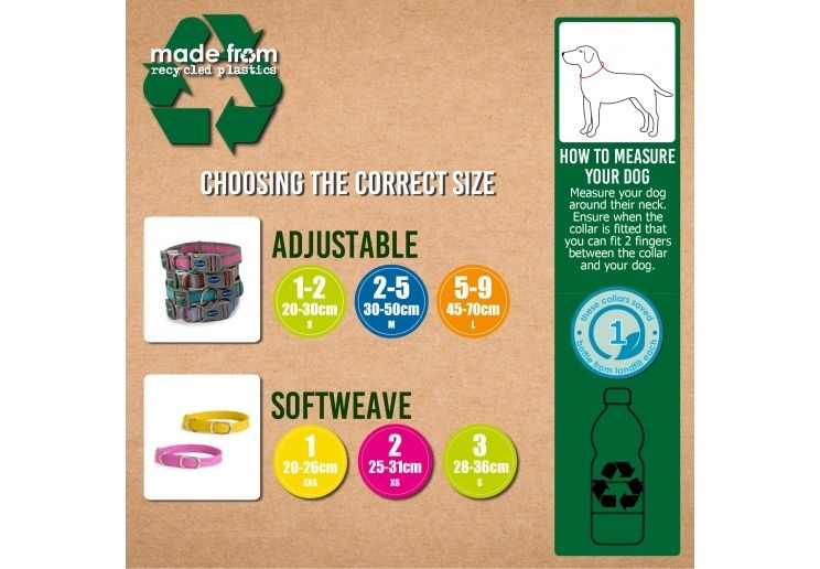 • Made from post-consumer recycled plastics such as pop bottles - each collar uses the equivalent of at least 1 plastic bottle
