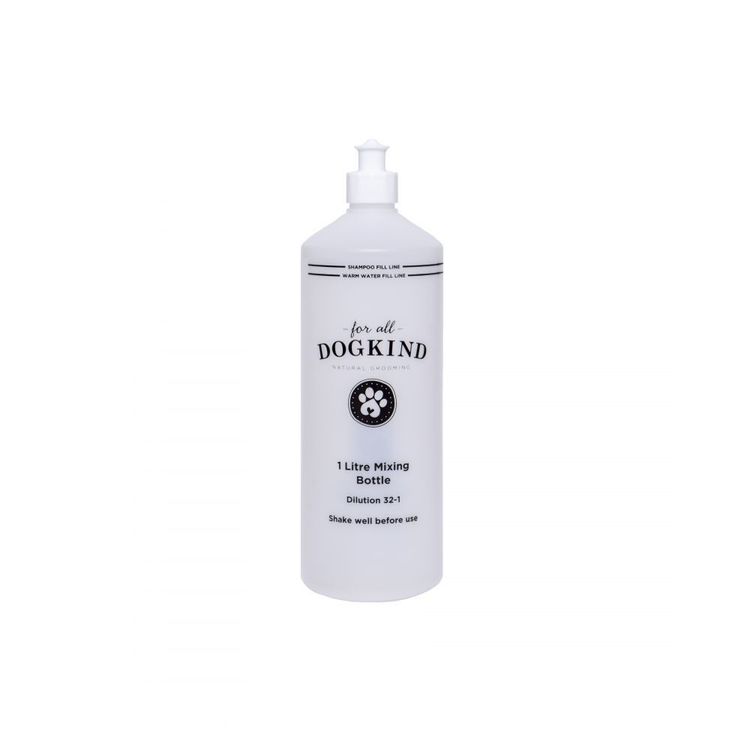 Use this 1Litre mixing bottle and fill with warm water to the fill line then add the DogKind shampoo to the next fill line