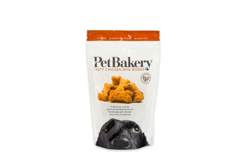 The Pet Bakery Tasty Chicken Mini Bones are a delicious crunchy gourmet shortbread biscuit made with real chicken and a hint of rosemary.