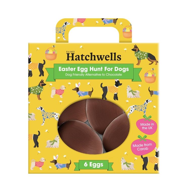 Hatchwells Easter Egg Hunt for dogs is the paw-fect way to get your best friend involved with the Easter festivities. Our eggs are handmade using a dog friendly alternative to chocolate so your pups and their tums will enjoy the hunt! ? Complementary pet food for small ? medium dogs ? Dog friendly alternative to chocolate ? Made from carob ? Free from cocoa ? Gluten & wheat free recipe ? Made in the UK ? Recyclable packaging