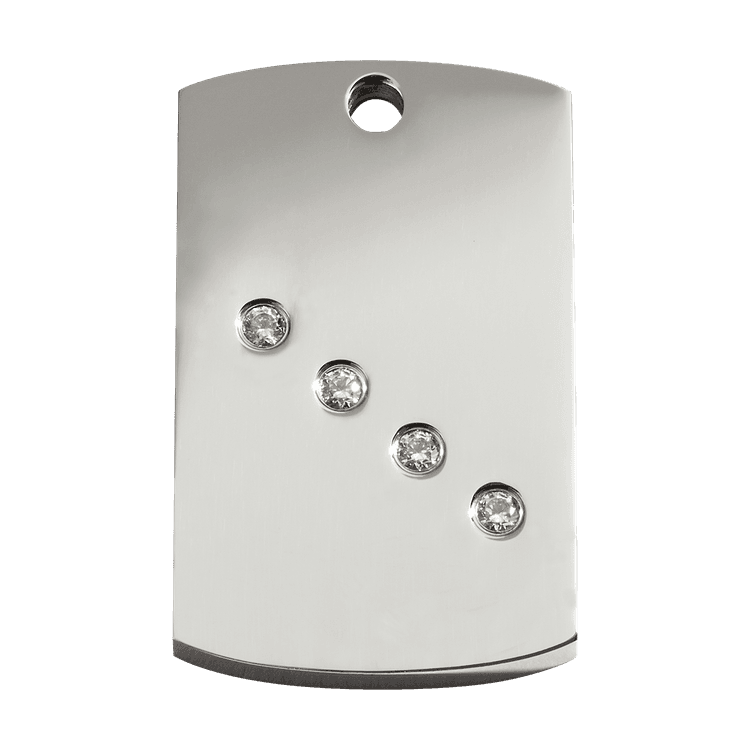 High quality personalised Dog tag by Red Dingo. Made from Stainless Steel in a stylish Stainless Diamante design, this collar tag looks fantastic as well as ensuring a quick reunion should your beloved pet become lost.