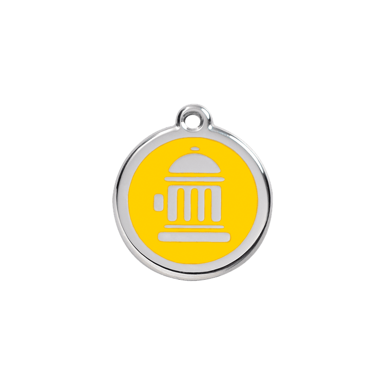 High quality personalised Dog tag by Red Dingo. Made from Stainless Steel in a stylish Yellow Fire Hydrant design, this collar tag looks fantastic as well as ensuring a quick reunion should your beloved pet become lost.