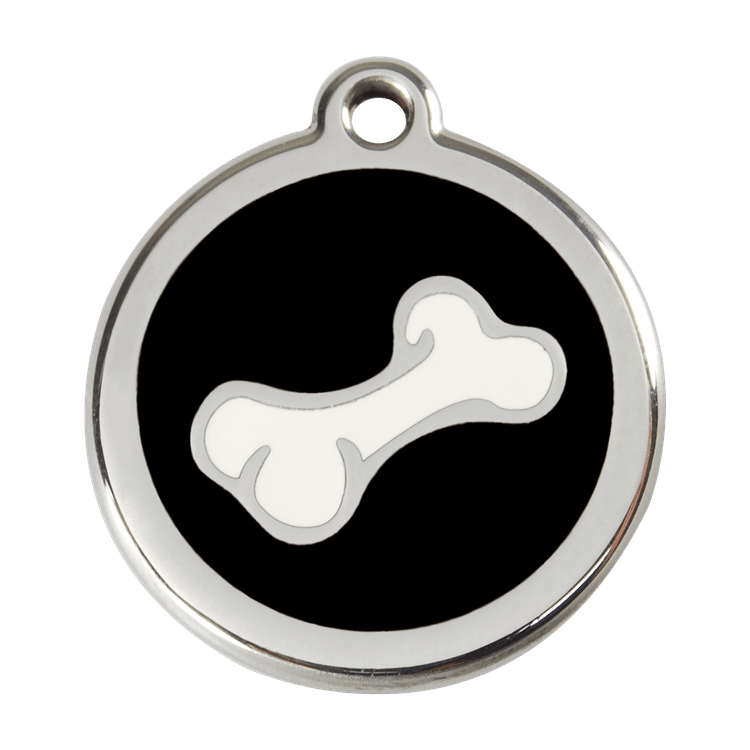 High quality personalised Dog tag by Red Dingo. Made from Stainless Steel in a stylish Black Bone design, this collar tag looks fantastic as well as ensuring a quick reunion should your beloved pet become lost.