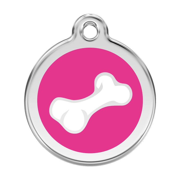 High quality personalised Dog tag by Red Dingo. Made from Stainless Steel in a stylish Pink Bone design, this collar tag looks fantastic as well as ensuring a quick reunion should your beloved pet become lost.