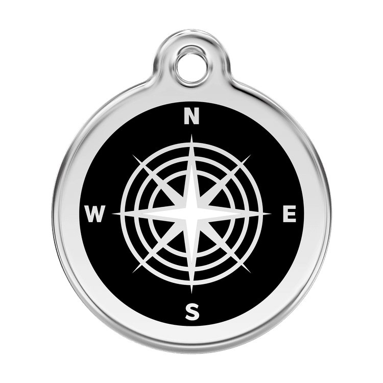 High quality personalised Dog tag by Red Dingo. Made from Stainless Steel in a stylish Black Compass design, this collar tag looks fantastic as well as ensuring a quick reunion should your beloved pet become lost.