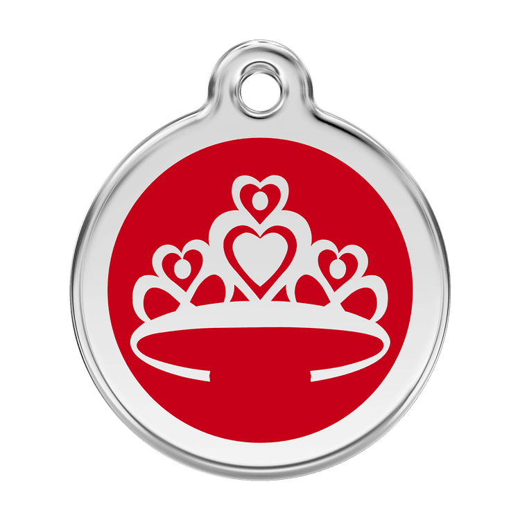 High quality personalised Dog tag by Red Dingo. Made from Stainless Steel in a stylish Red Crown design, this collar tag looks fantastic as well as ensuring a quick reunion should your beloved pet become lost.