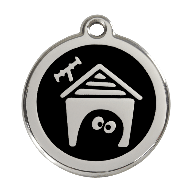 High quality personalised Dog tag by Red Dingo. Made from Stainless Steel in a stylish Black Dog House design, this collar tag looks fantastic as well as ensuring a quick reunion should your beloved pet become lost.