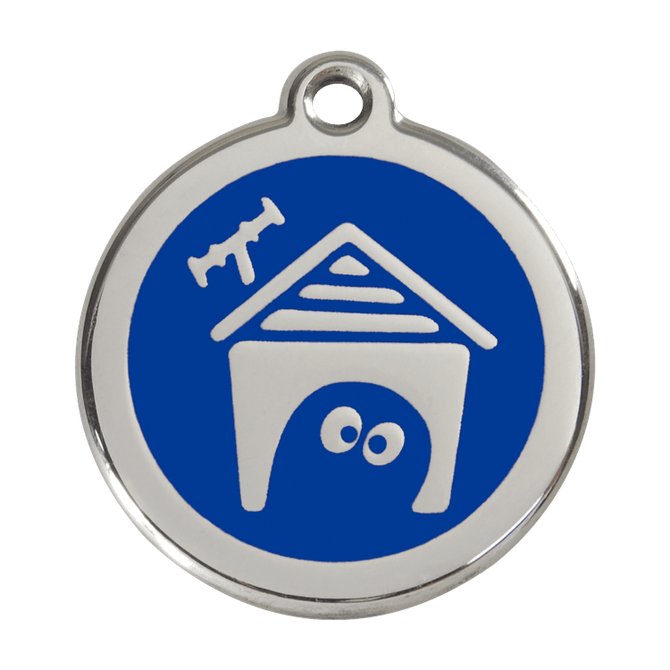 High quality personalised Dog tag by Red Dingo. Made from Stainless Steel in a stylish Navy Dog House design, this collar tag looks fantastic as well as ensuring a quick reunion should your beloved pet become lost.