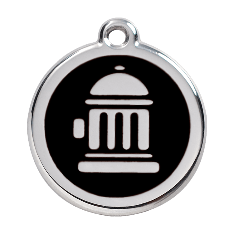 High quality personalised Dog tag by Red Dingo. Made from Stainless Steel in a stylish Black Fire Hydrant design, this collar tag looks fantastic as well as ensuring a quick reunion should your beloved pet become lost.