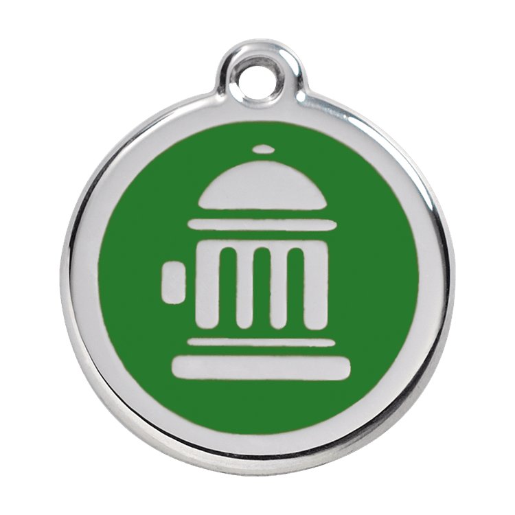 High quality personalised Dog tag by Red Dingo. Made from Stainless Steel in a stylish Green Fire Hydrant design, this collar tag looks fantastic as well as ensuring a quick reunion should your beloved pet become lost.