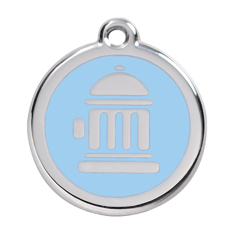 High quality personalised Dog tag by Red Dingo. Made from Stainless Steel in a stylish Blue Fire Hydrant design, this collar tag looks fantastic as well as ensuring a quick reunion should your beloved pet become lost.