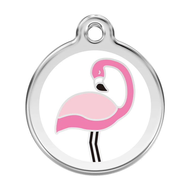 High quality personalised Dog tag by Red Dingo. Made from Stainless Steel in a stylish White Flamingo design, this collar tag looks fantastic as well as ensuring a quick reunion should your beloved pet become lost.