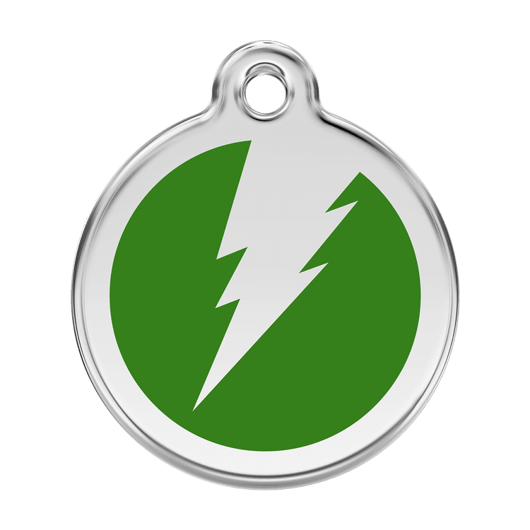 High quality personalised Dog tag by Red Dingo. Made from Stainless Steel in a stylish Green Flash design, this collar tag looks fantastic as well as ensuring a quick reunion should your beloved pet become lost.