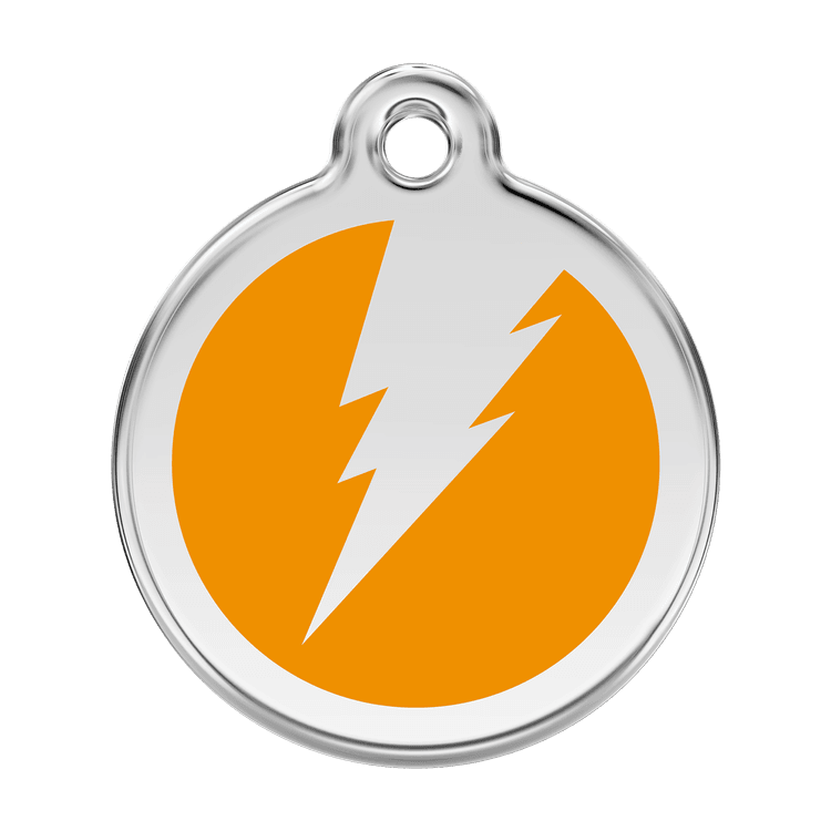 High quality personalised Dog tag by Red Dingo. Made from Stainless Steel in a stylish Orange Flash design, this collar tag looks fantastic as well as ensuring a quick reunion should your beloved pet become lost.