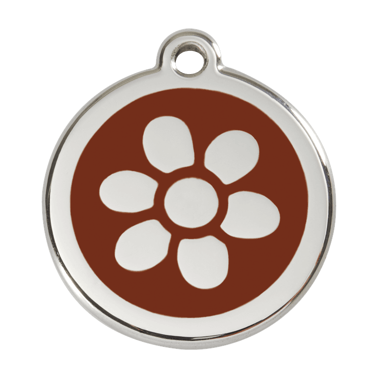 High quality personalised Dog tag by Red Dingo. Made from Stainless Steel in a stylish Brown Flower design, this collar tag looks fantastic as well as ensuring a quick reunion should your beloved pet become lost.