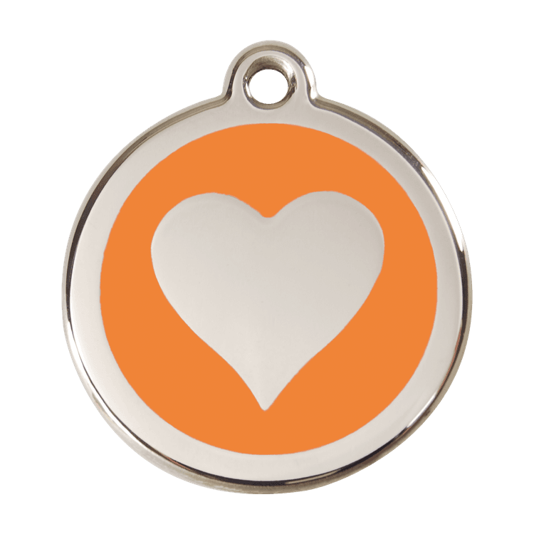 High quality personalised Dog tag by Red Dingo. Made from Stainless Steel in a stylish Orange Heart design, this collar tag looks fantastic as well as ensuring a quick reunion should your beloved pet become lost.