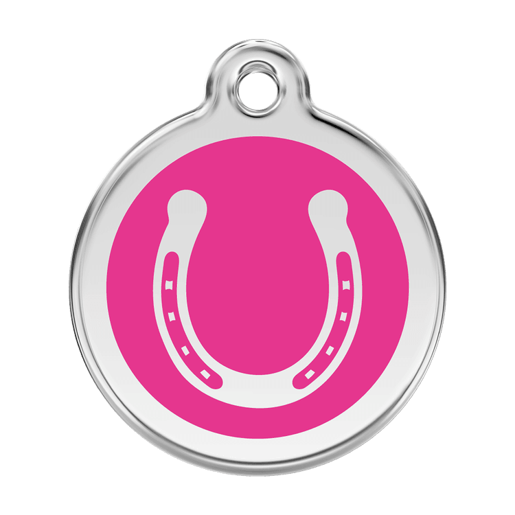 High quality personalised Dog tag by Red Dingo. Made from Stainless Steel in a stylish Pink Horse Shoe design, this collar tag looks fantastic as well as ensuring a quick reunion should your beloved pet become lost.
