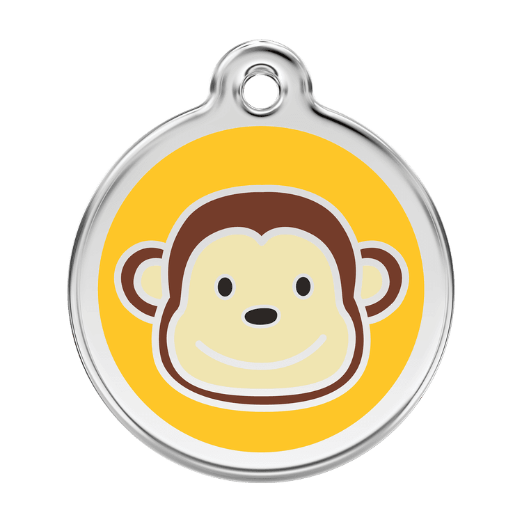 High quality personalised Dog tag by Red Dingo. Made from Stainless Steel in a stylish Yellow Monkey design, this collar tag looks fantastic as well as ensuring a quick reunion should your beloved pet become lost.
