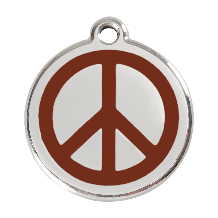 High quality personalised Dog tag by Red Dingo. Made from Stainless Steel in a stylish Brown Peace design, this collar tag looks fantastic as well as ensuring a quick reunion should your beloved pet become lost.
