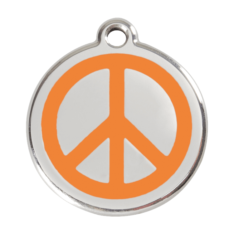 High quality personalised Dog tag by Red Dingo. Made from Stainless Steel in a stylish Orange Peace design, this collar tag looks fantastic as well as ensuring a quick reunion should your beloved pet become lost.