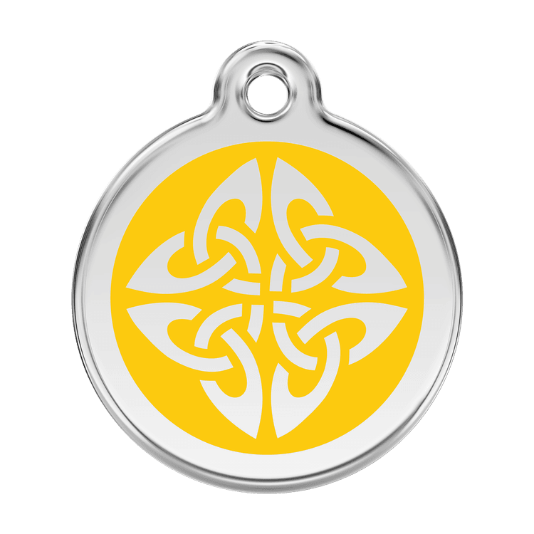 High quality personalised Dog tag by Red Dingo. Made from Stainless Steel in a stylish Yellow Tribal design, this collar tag looks fantastic as well as ensuring a quick reunion should your beloved pet become lost.