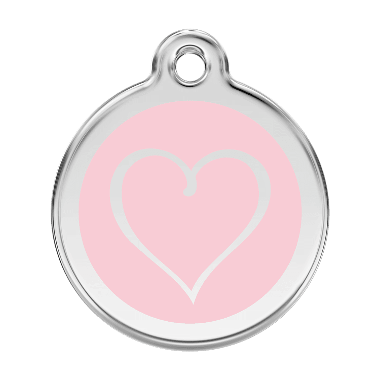 High quality personalised Dog tag by Red Dingo. Made from Stainless Steel in a stylish Pink Heart design, this collar tag looks fantastic as well as ensuring a quick reunion should your beloved pet become lost.