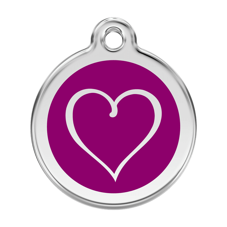High quality personalised Dog tag by Red Dingo. Made from Stainless Steel in a stylish Purple Heart design, this collar tag looks fantastic as well as ensuring a quick reunion should your beloved pet become lost.