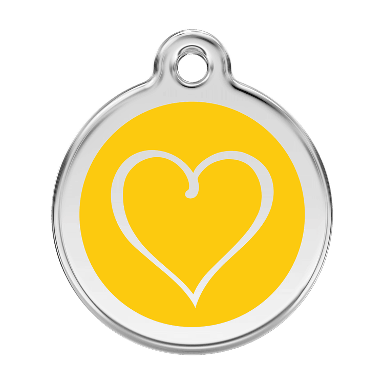 High quality personalised Dog tag by Red Dingo. Made from Stainless Steel in a stylish Yellow Heart design, this collar tag looks fantastic as well as ensuring a quick reunion should your beloved pet become lost.