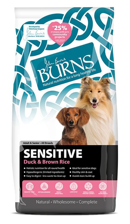 This simple recipe with natural ingredients makes it ideal for sensitive dogs. The wholegrain brown rice is important for healthy digestion. Duck is a novel protein source; this means that if your dog has never eaten it before they will be less likely to have a reaction. It is a particularly good option for dogs with food allergies or intolerances. It is low in fat and highly digestible.