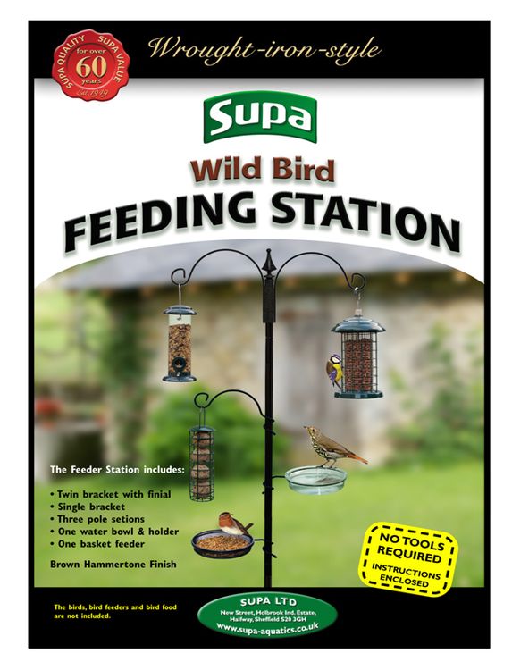 Attractively designed Wild Bird Feeding Station which comes completed with twin bracket & single bracket for holding feeders plus water dish and mesh basket style tray which is suitable for feeding Dried Mealworms & Scraps from.