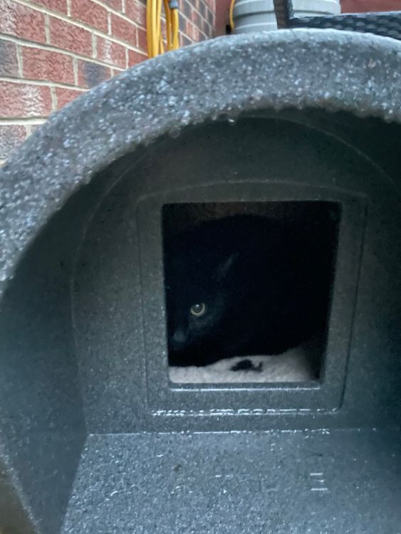 It took my cat 2 weeks to make use of this but he finally uses it all the time. It’s perfect and keeps him dry and warm whilst out the house. Would highly recommend