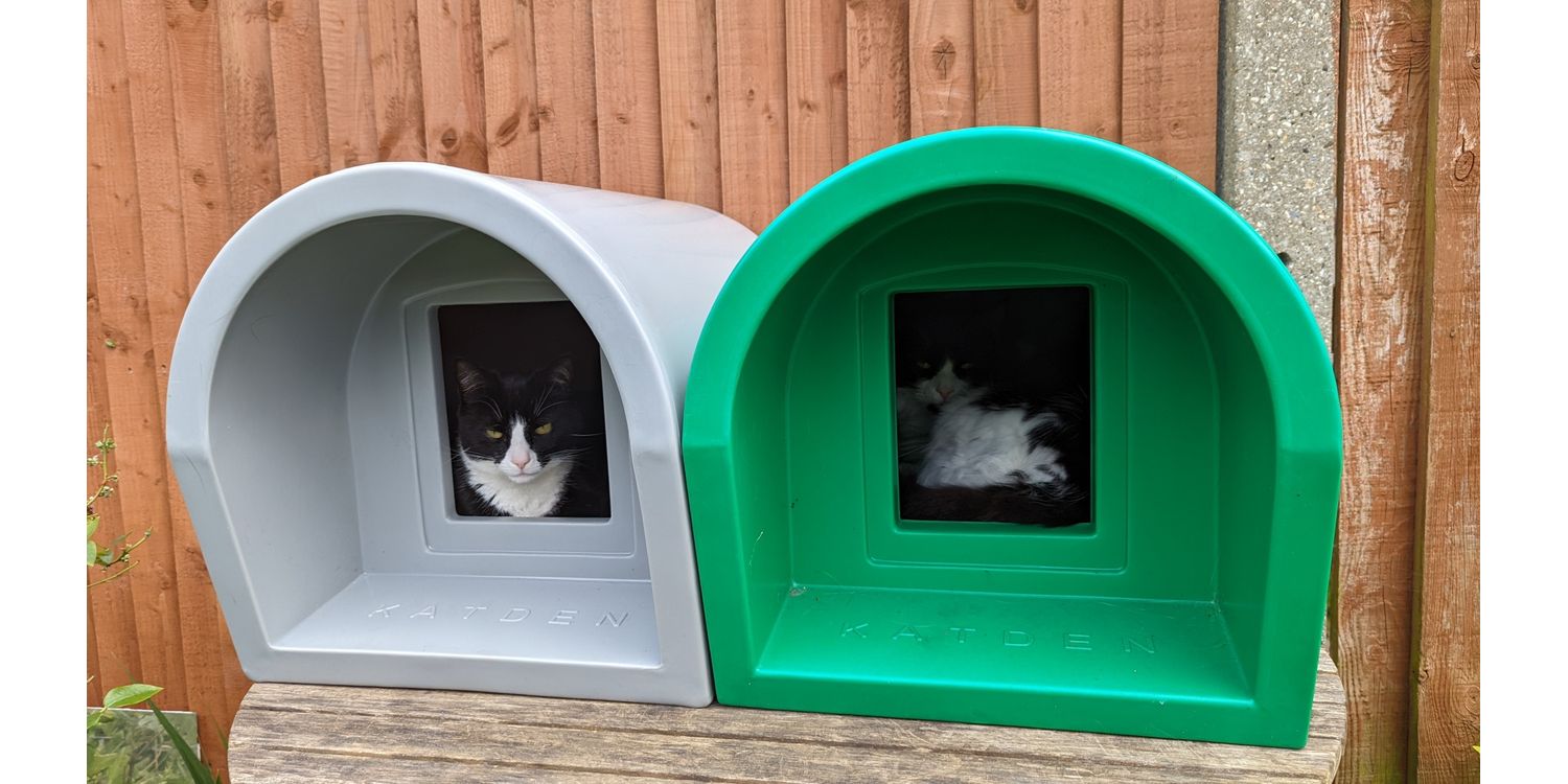 The Kat den came promptly. Both my cats love it. I like that is one moulded piece of plastic. I don't have to worry about it getting destroyed in the weather over time.