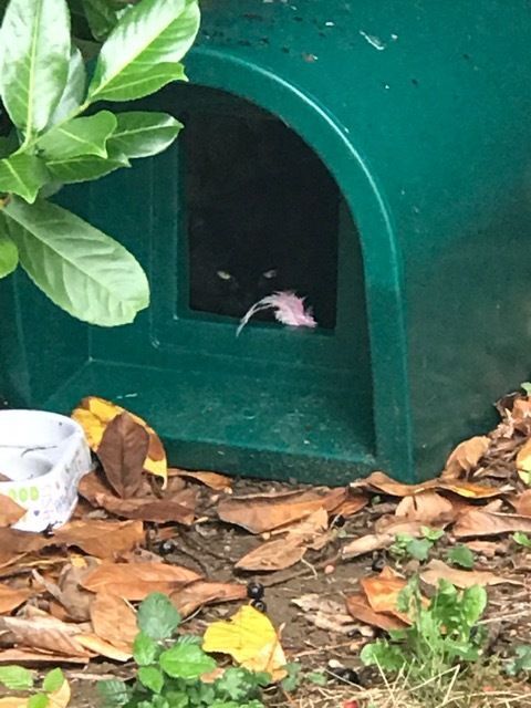 We are lucky to have been adopted by a little black stray. She is slowly building up trust and now sits within a metre of us. In return we have bought her this lovely, snug and stable home. After a few days she figured out it was a safe and warm spot and is happily making use of her new home. We’ve called her Betty.