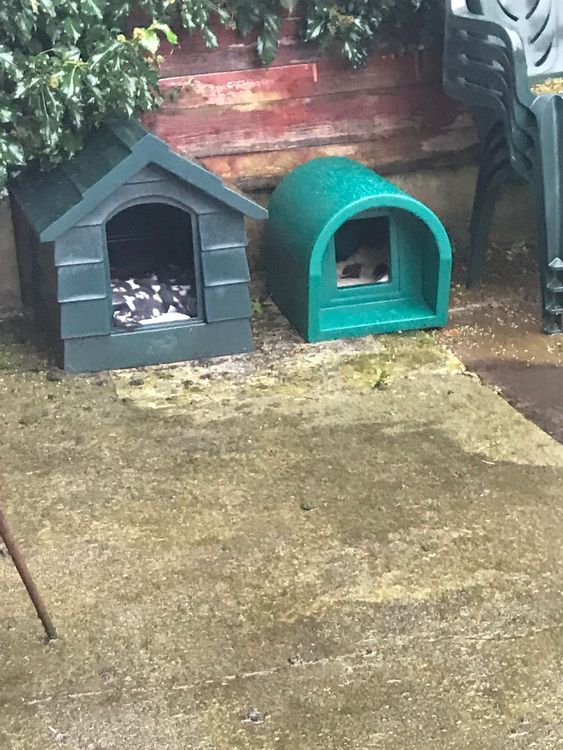 Wanted to get this kennel for my stray cat that comes around everyday. The weather is getting colder and I was really worried aboit him. But he loves it, sleeps in there in the day and bight! Very warm and insulated. I did buy a normal wooden kennel but rotted quickly.