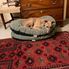 Lovely green Danish Design beds much loved by two whippets. These spare mattresses were stacked while we cleaned the bases of the beds and the younger whippet immediately settled down on them. They sleep so well on these lovely beds.