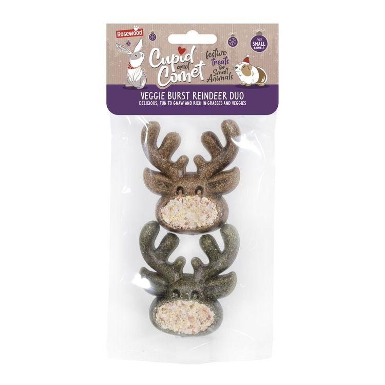 Our cute reindeer heads are a fun and tasty way to give your rabbits and rodents a delicious and gnawable treat.