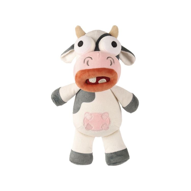 Crosby Cow Plush dog toy with exagerated lips,