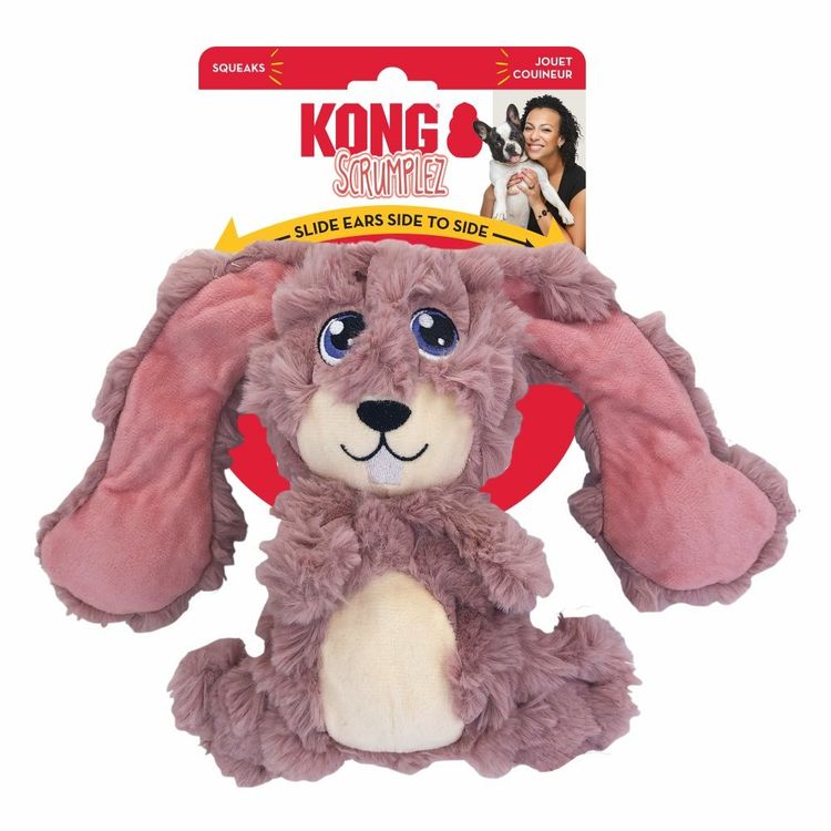 KONG Scrumplez critters delight dog's with ears that slide through their heads to add a surprising dimension to tugging fun. With irresistibly soft plush, these adorable buddies beg to be snuggled between instinct-satisfying bouts of gentle chewing, tugging and fetching. Squeaker prolongs play.