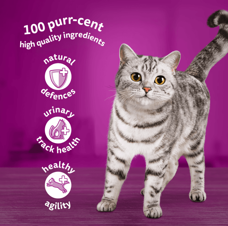 Treat your senior cat to the joy of WHISKAS and keep their tails wagging with happiness.