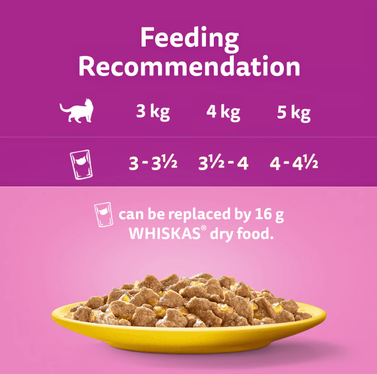 Introducing WHISKAS 7+ Poultry Feasts in Jelly Wet Cat Food crafted to preserve natural goodness that satisfy your cat's craving! Specially formulated with sustainably sourced ingredients, these jelly pouches are a blend that will keep your feline friend healthy and content.