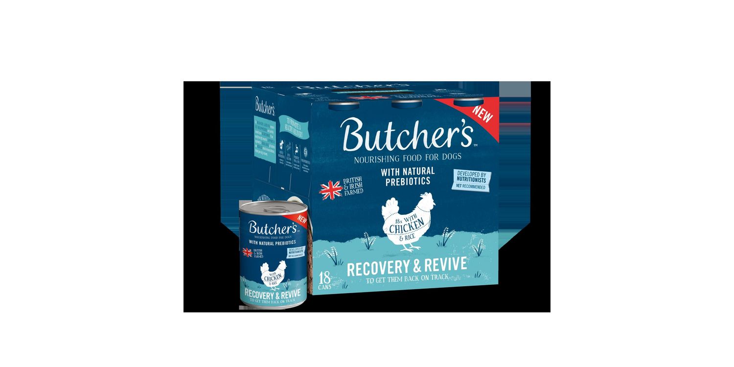 Butcher's Recovery & Revive recipe is Vet Recommended and carefully created by our Nutritionist. It has exactly the right amount of supportive ingredients to rebalance gut bacteria and rebuild natural immune defences, helping your dog's recovery.