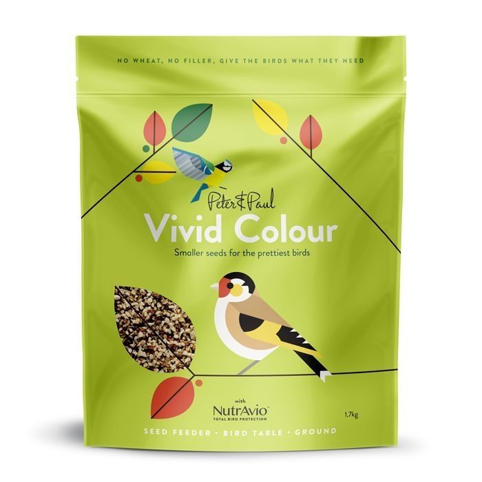 Formulated using high quality ingredients, Peter&Paul Vivid Colour contains nutritious little seeds to suit smaller billed birds. Vivid Colour contains no wheat or filler seeds which means less waste and more delicious goodness for birds. With the added extra benefit of NutrAvio; a digestible coating which restricts the growth of bacteria and helps keep garden birds healthy.